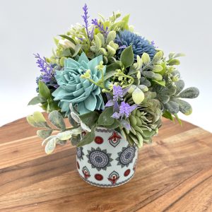 Dusty Blue and Orange Fall Wood Flower Arrangement