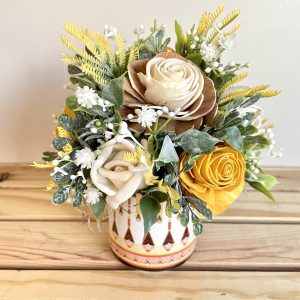 ABOUT WOOD FLOWERS: Wood flowers are individually handmade and hand painted. They will last forever as long as they are kept moisture free. To dust, we recommend using a hair dryer on low.